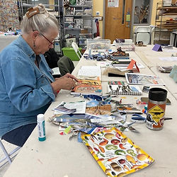 Concertina Collage Open Studio With Jackie Amatucci and Lianna Gilman Tuesdays April 21 & 28 (continues on Thursdays in May) 3 - 5 pm Cost: $15 per week plus a small materials fee directly to the teachers. Concertina sketchbooks with 35 pages of high-quality mixed-media paper will be available for an additional $15 if you’d like one, or you can make/bring one of your own. These open-studio sessions are oriented to playing with mixed-media collage and mark-making. We especially encourage you to work in a concertina (accordion-fold) sketchbook, which adds an exciting dimension to exploring your creative edges and developing your own style. Jackie and Lianna will provide support and inspiration rather than structured teaching, drawing from their years of creative experience. You’ll have the use of a wide range of collage materials (paper and fabric), mark-making implements, and mixed-media supplies. This is a great opportunity to be curious and playful with color and texture while enjoying uninterrupted creative time in a relaxed setting. We welcome anyone who has some familiarity with collage and/or mark-making, at any level of experience. We’re offering these sessions on a drop-in basis. It’s optional to register in advance and you can decide week by week or commit to the whole series. Jackie Amatucci has been a mixed media artist for over 10 years. She also is a potter, jewelry maker, basket maker, and seamstress. She loves sharing her skills and delights in supporting others to make their own masterpieces. Jackie is co-founder of Create Space Langley. As a high school teacher for 30 years, her love of teaching and learning has never waned. Jackie was a teaching artist at Power of Hope Teen Camps for many years. She was a mentor and teaching artist for Seattle-based Young Women Empowered for 13 years. Lianna Gilman is a free-style weaver and fiber artist with an adventurous mixed-media spirit. She found her inner artist when she traded in perfection for curiosity and adopted the free-style approach of “no right, no wrong, no mistakes.” Visit www.heartsong-weaving.com for more about her fiber arts.